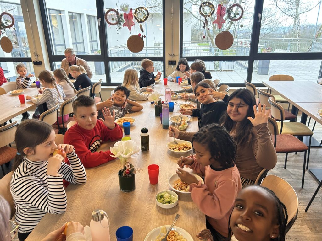 In der Jugendherberge angekommen, wurde zuerst alles entdeckt: Die Spielzimmer, die Flure, das große Haus und der schöne Aufenthaltsbereich. Danach gab es ein leckeres Mittagessen, bei dem alle gemeinsam gestärkt wurden.