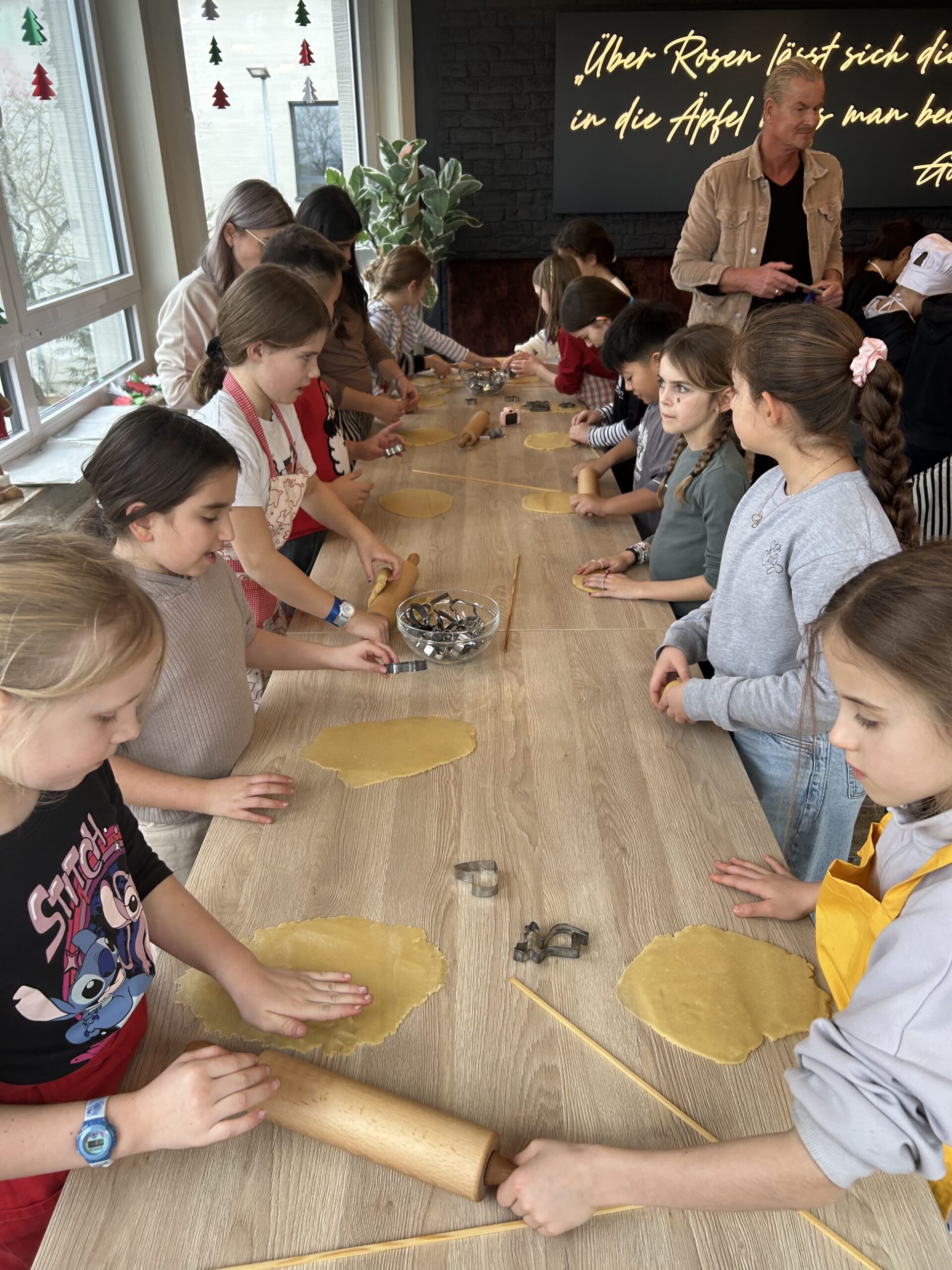 Dann begann der große Weihnachtsbäckerei-Spaß! Die Plätzchen wurden mit Ausstechern ausgestochen und alle Kinder haben fleißig geholfen. Anschließend bezogen die Klassen ihre Zimmer und richteten sie gemütlich ein.